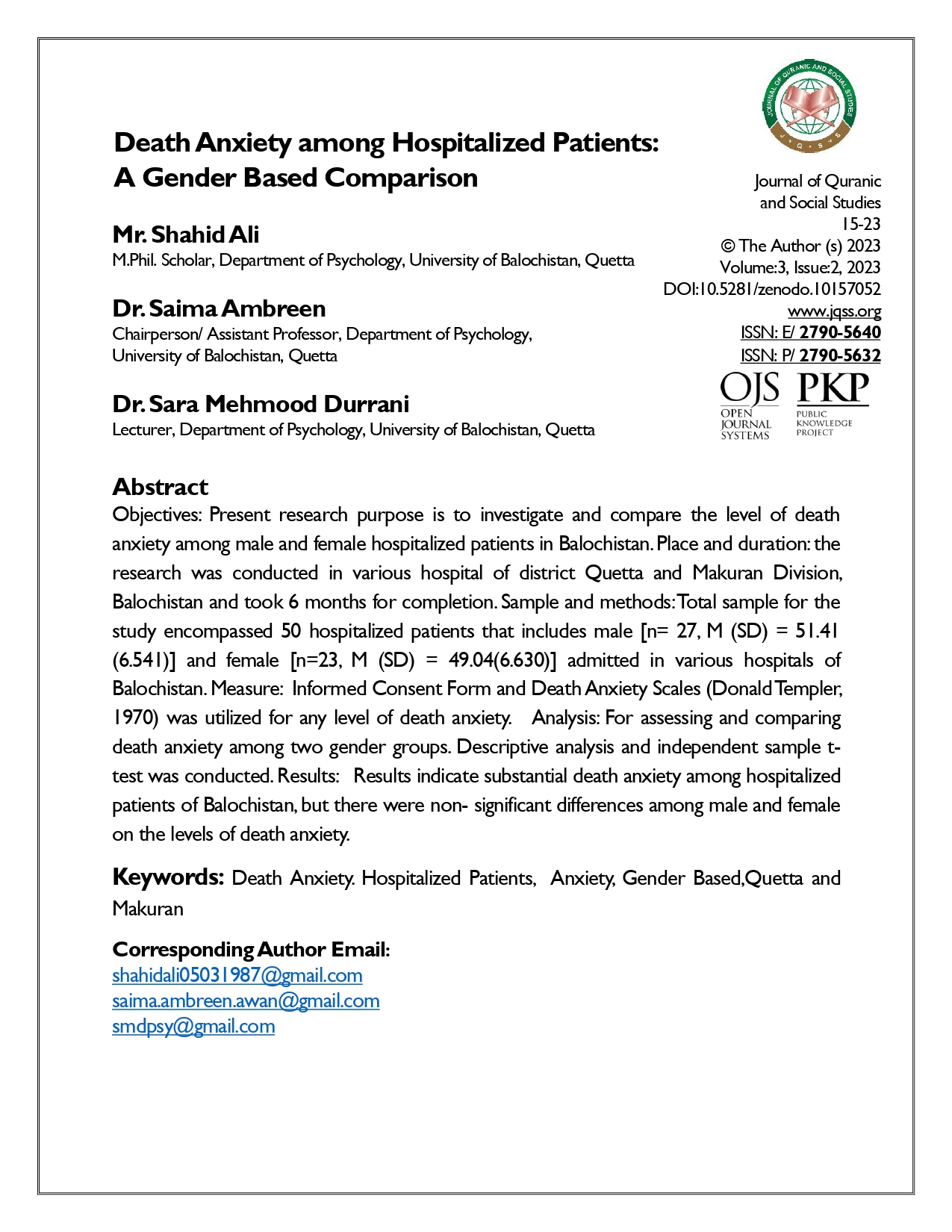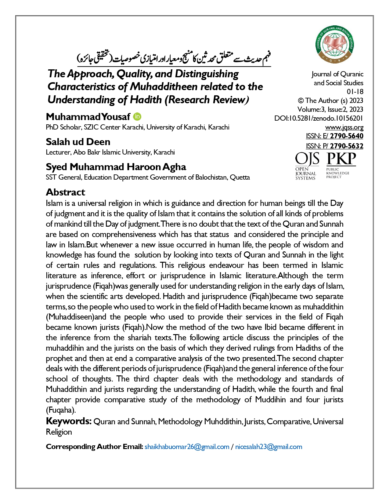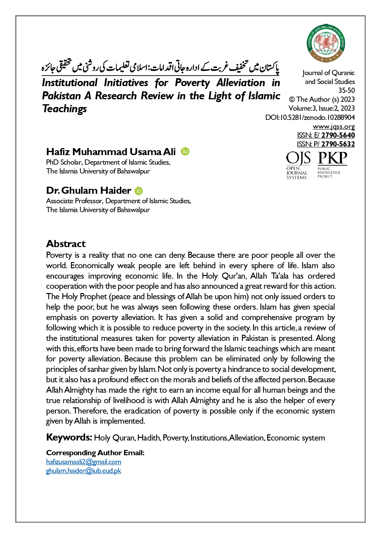 Vol. 3 No. 2 (2023): Journal of Quranic and Social Studies (JQSS)
