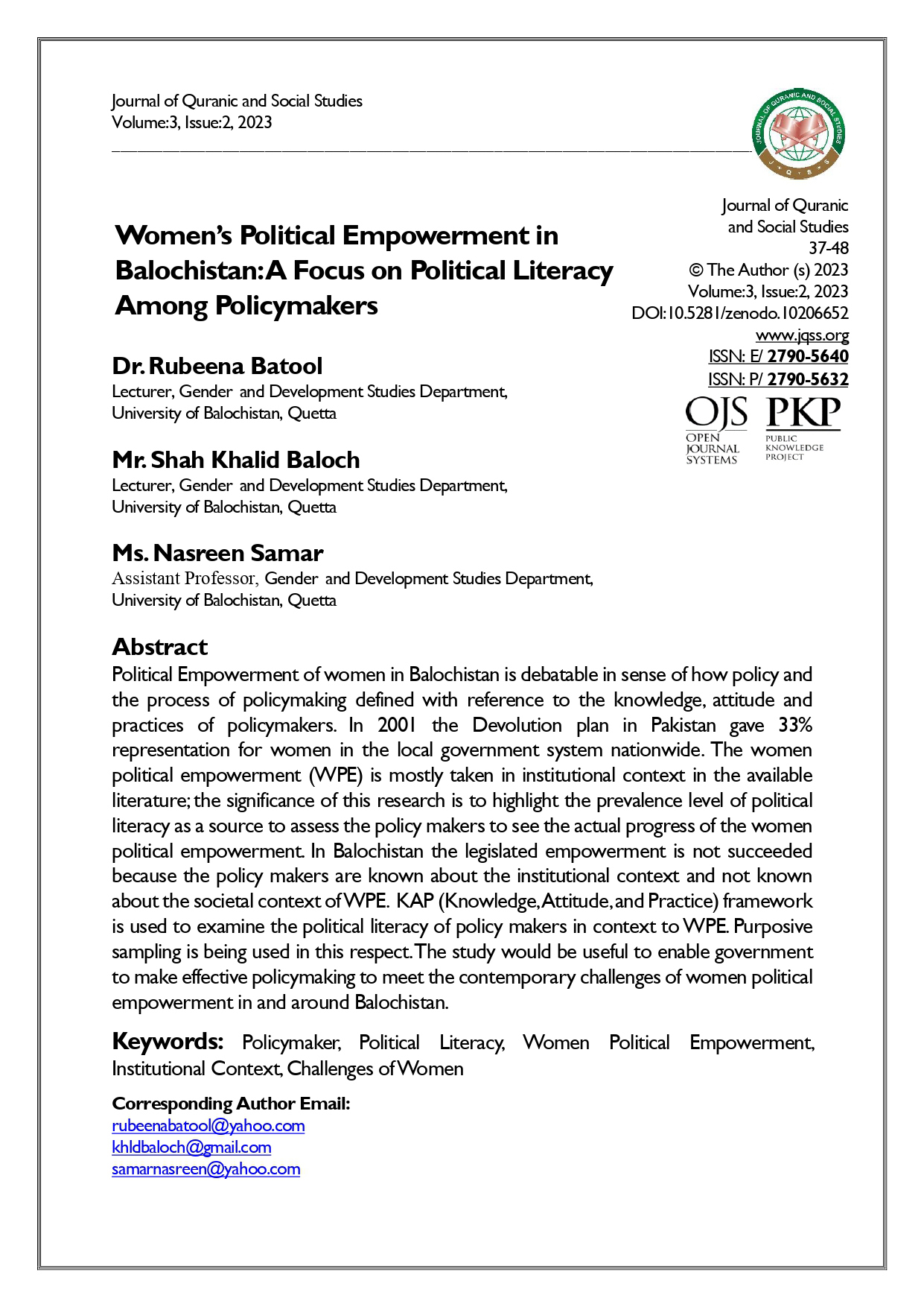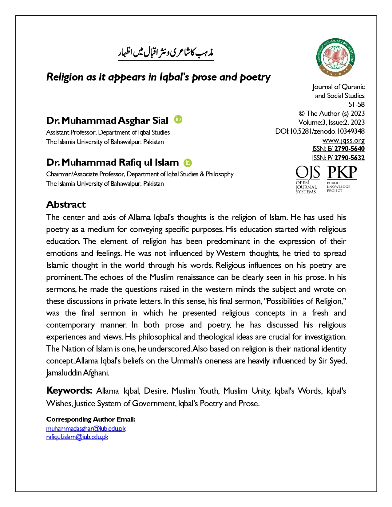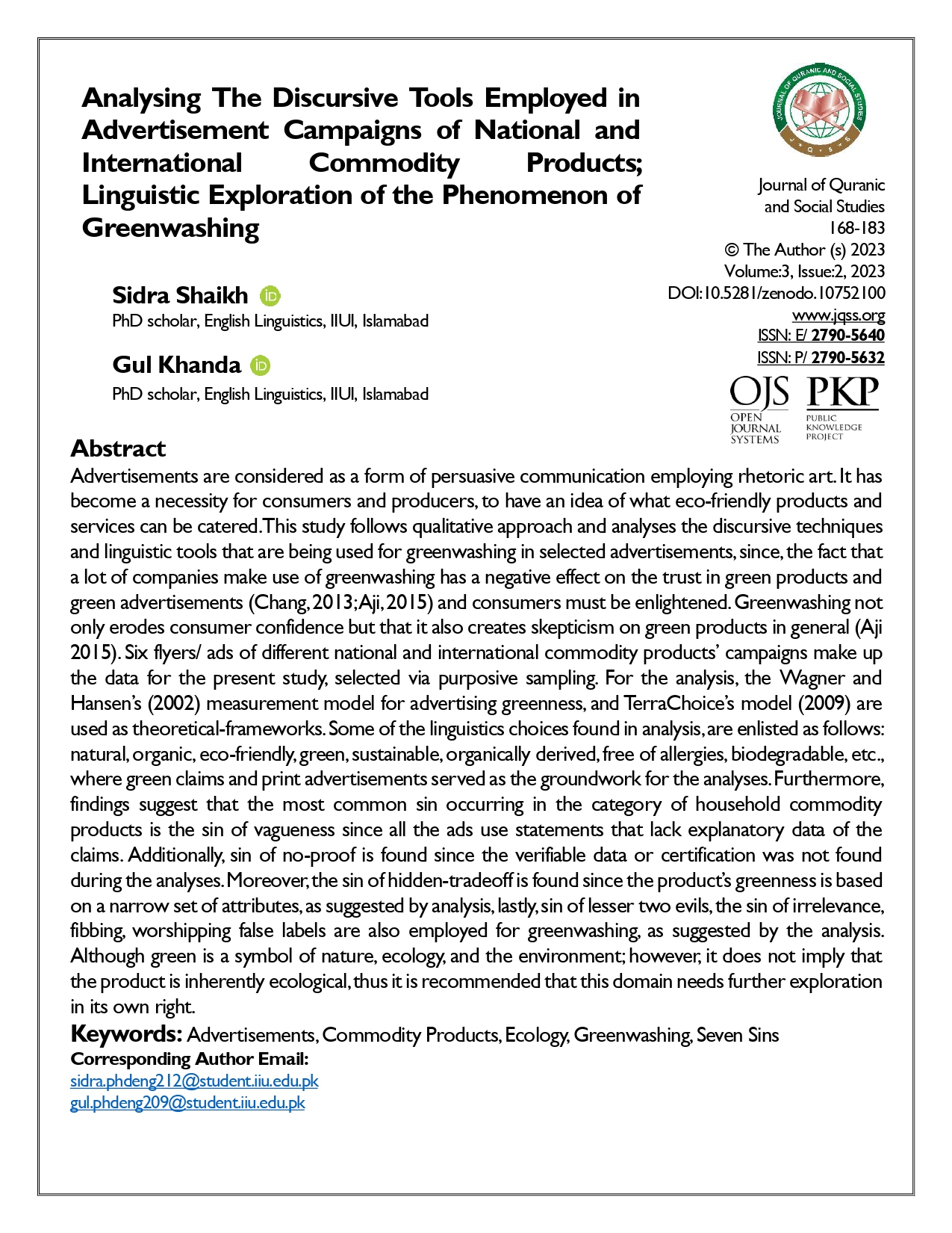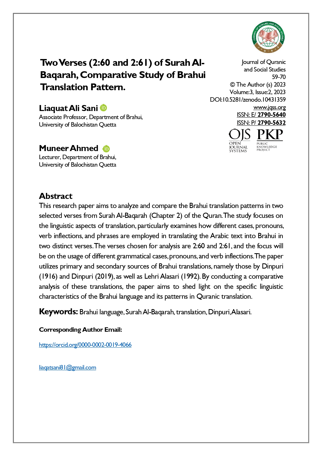 Vol. 3 No. 2 (2023): Journal of Quranic and Social Studies (JQSS)