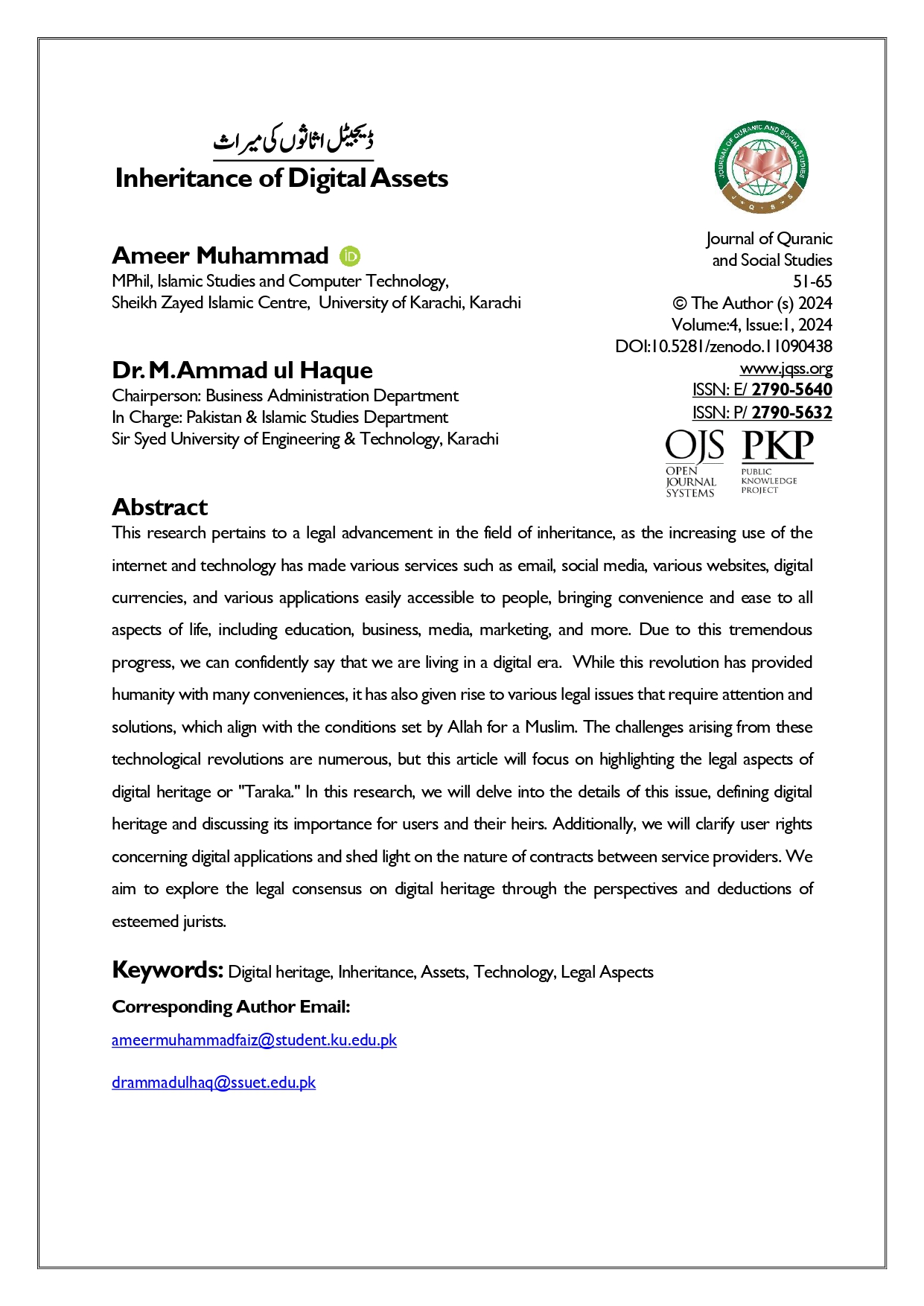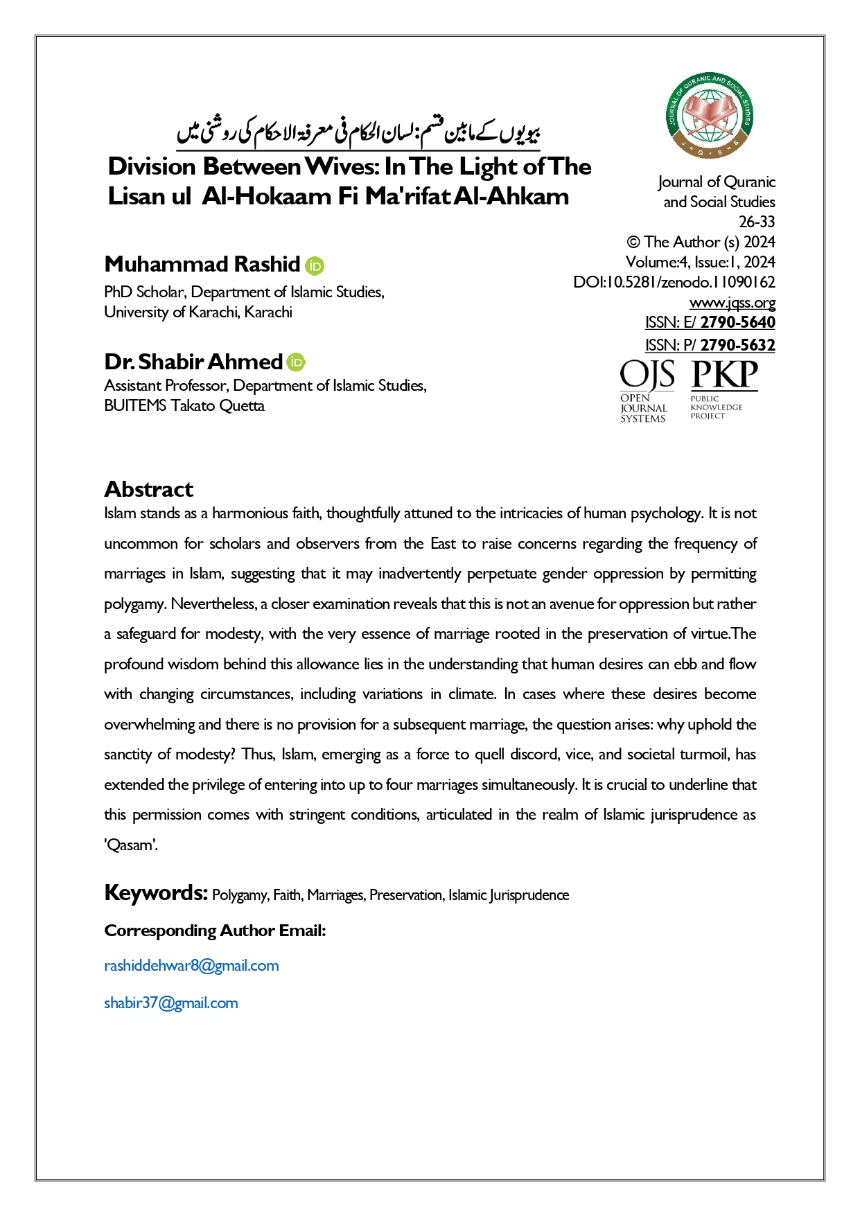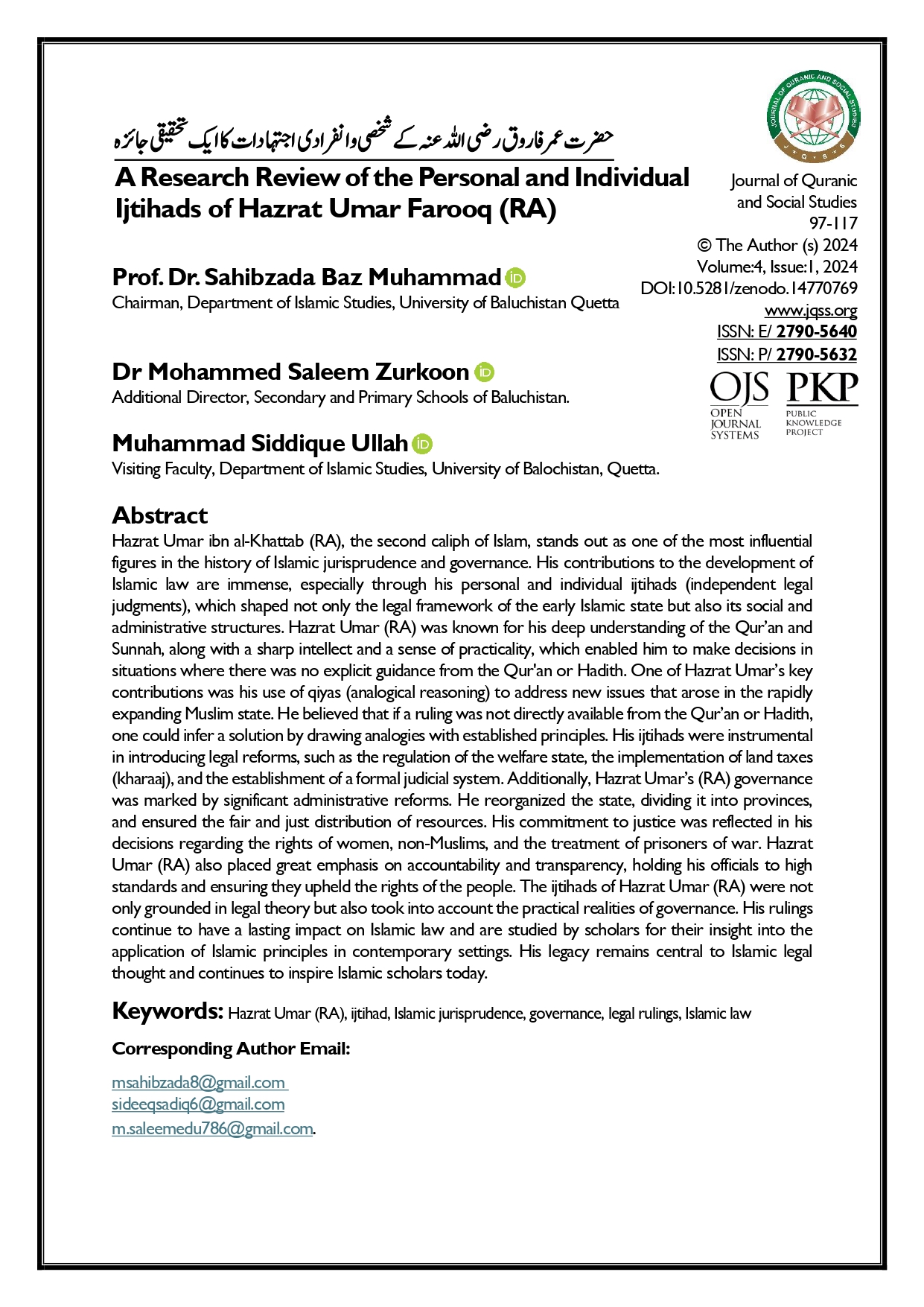 Vol. 4 No. 1 (2024): Journal of Quranic and Social Studies (JQSS)
