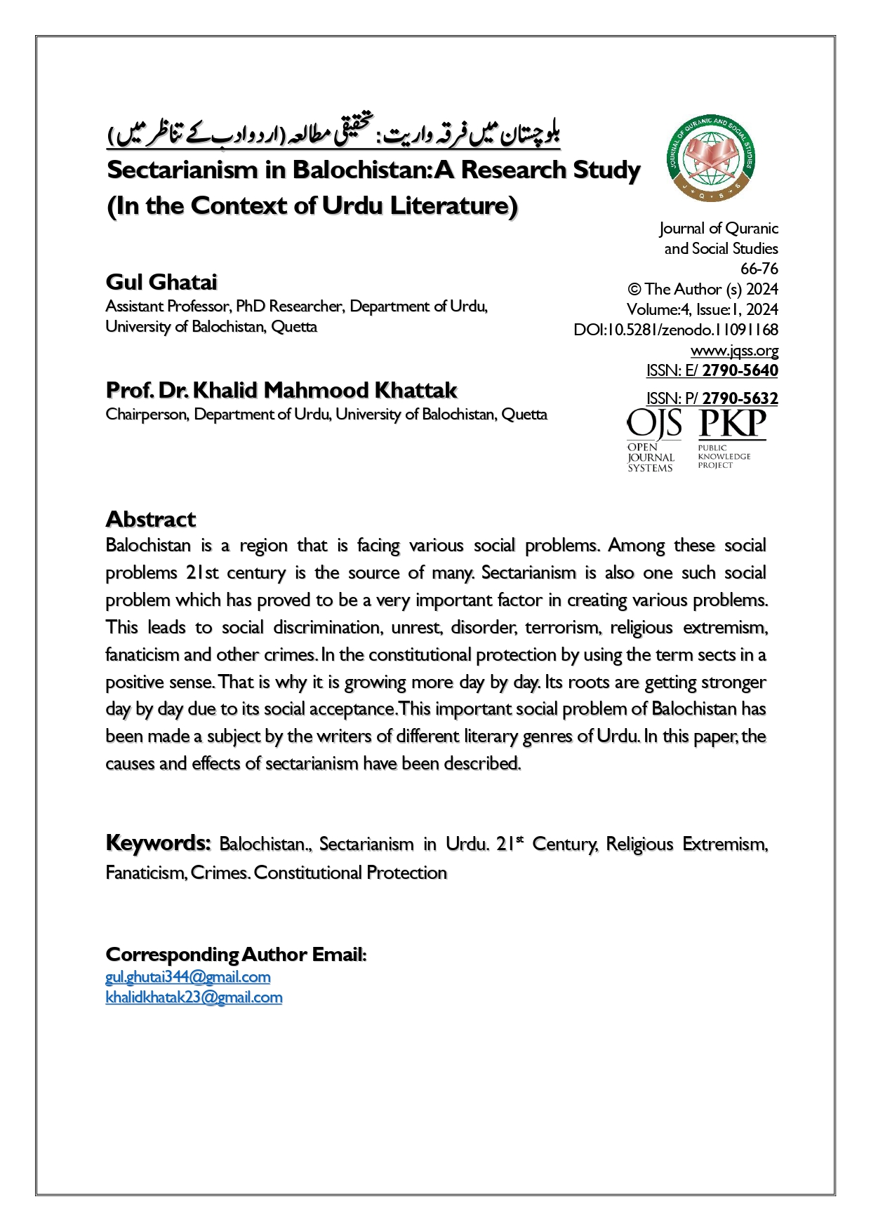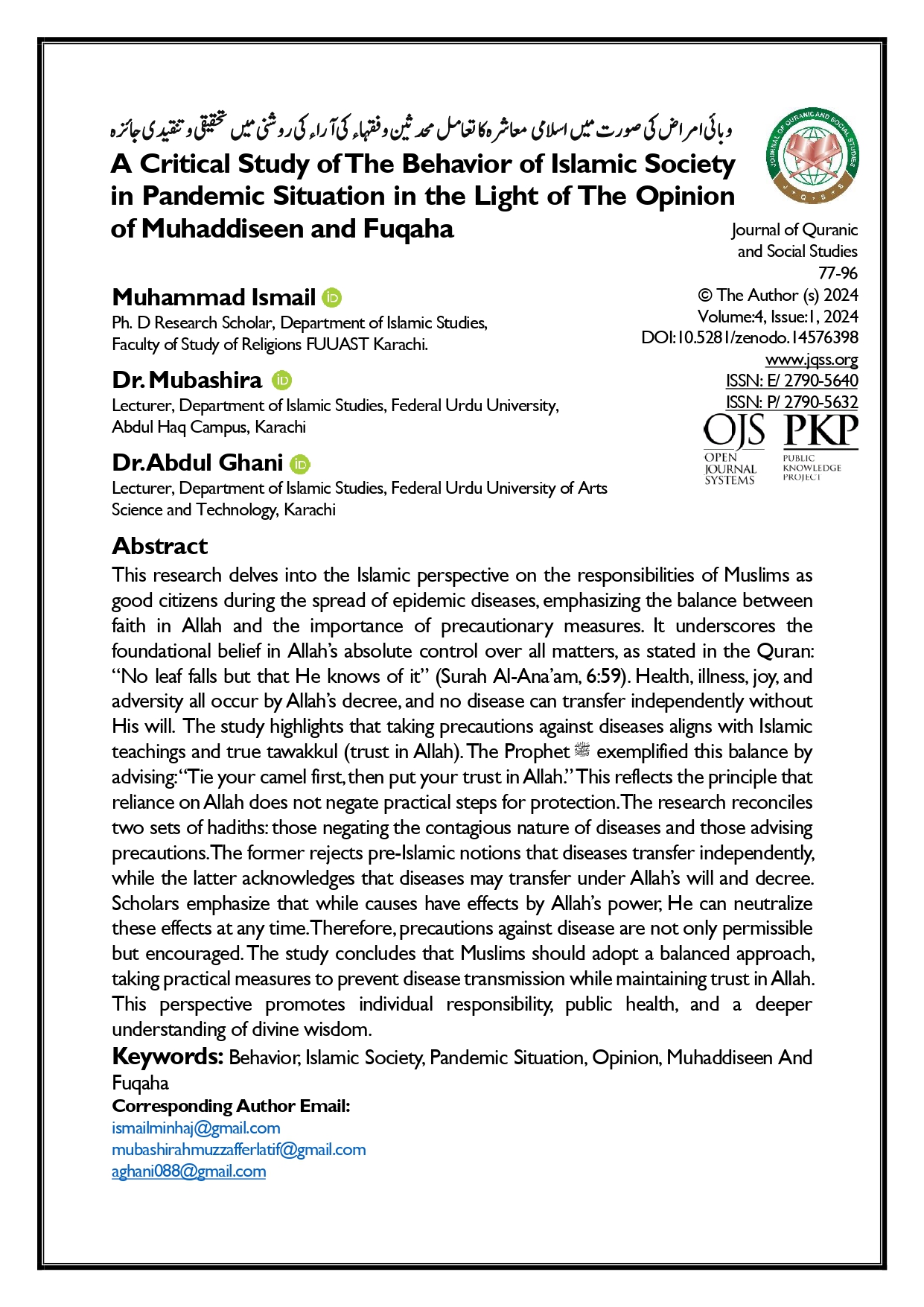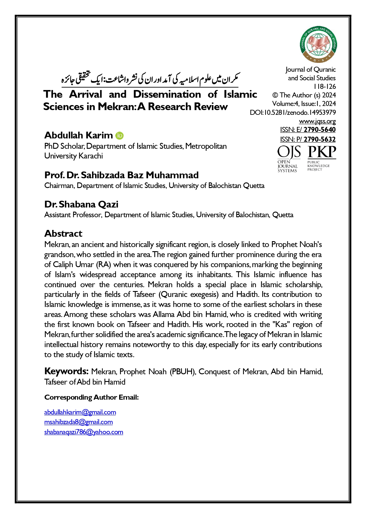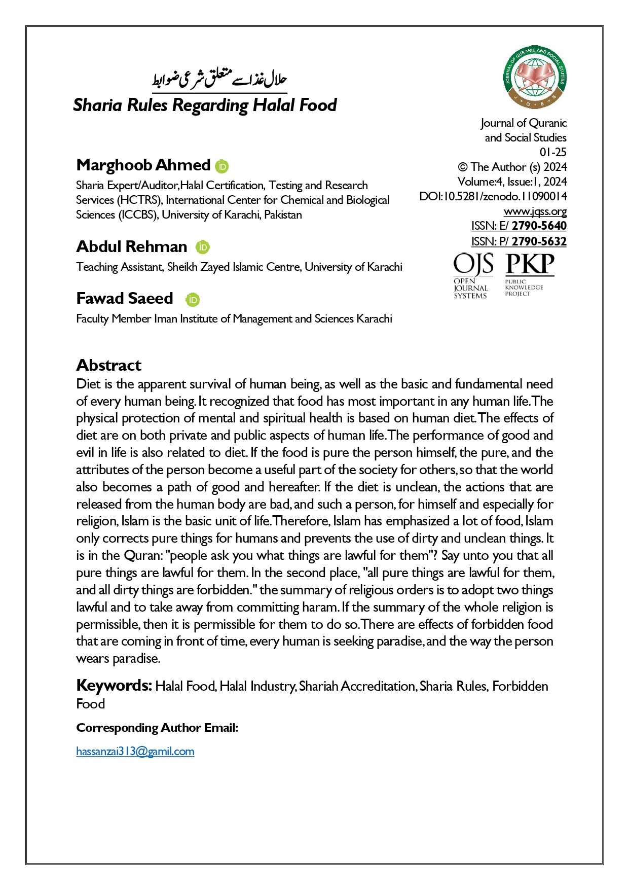 Vol. 4 No. 1 (2024): Journal of Quranic and Social Studies (JQSS)