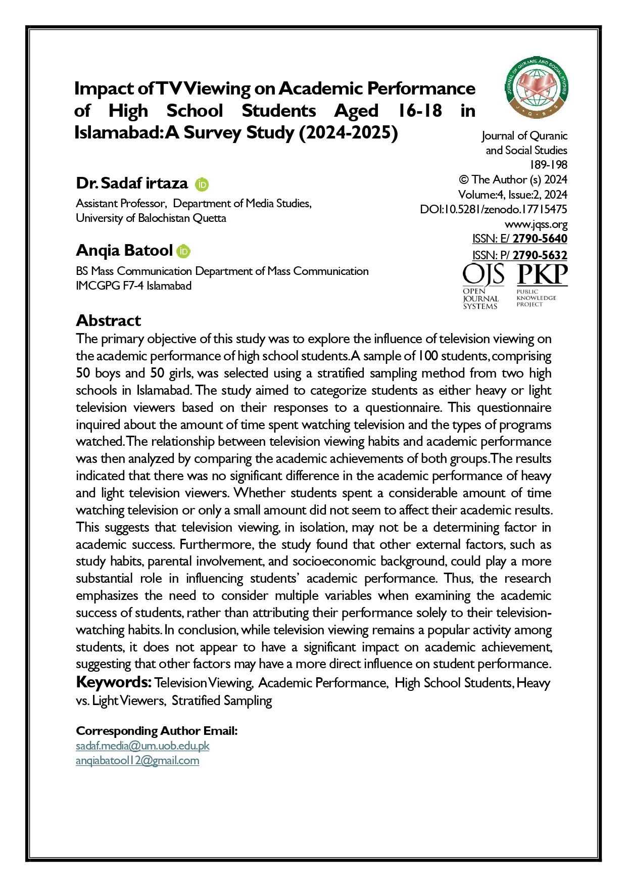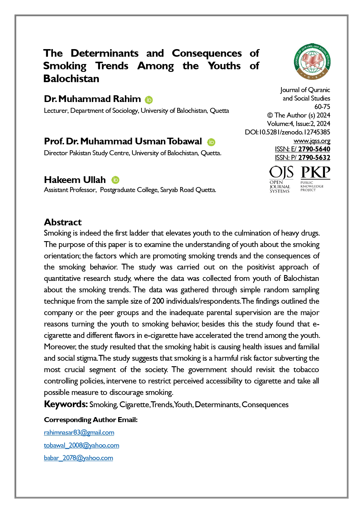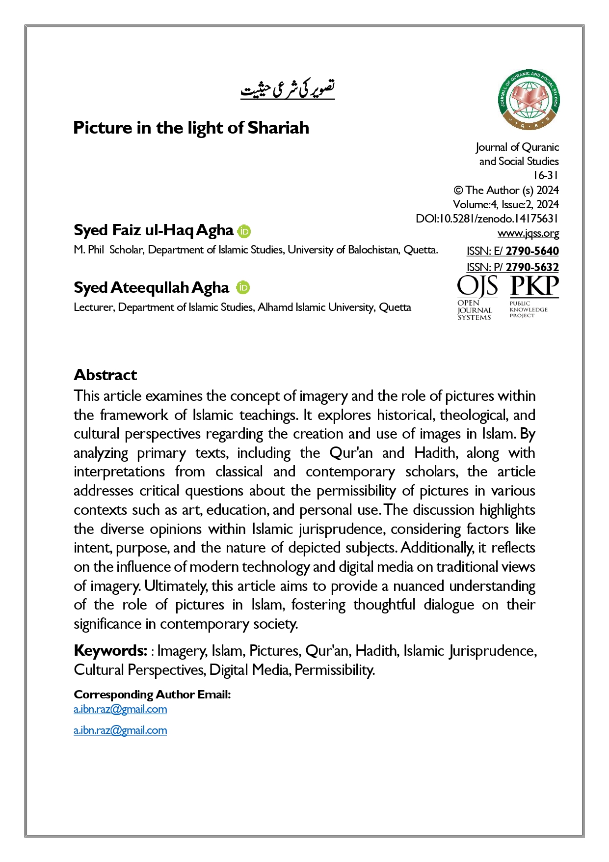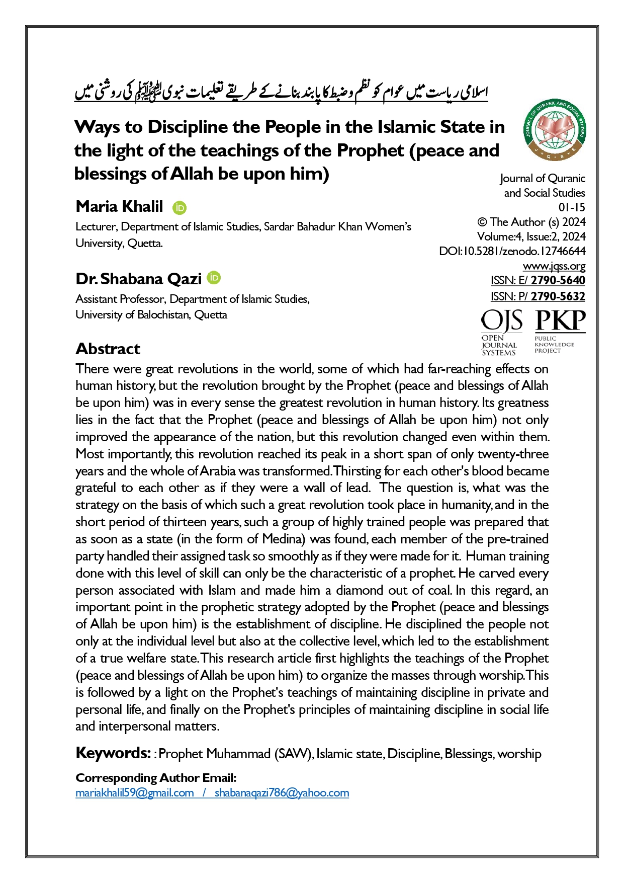 Vol. 4 No. 2 (2024): Journal of Quranic and Social Studies